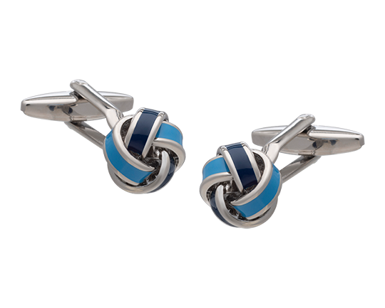 A modern take on a classic shape, these traditional knot cufflinks are embellished with an intertwined navy & blue enamel inlay. A statement of elegance and sophistication they stand out perfectly against a crisp white shirt and are great for colour coordinating the groom's wedding outfit.