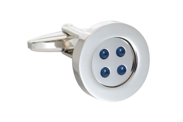 A new version of the classic button shape, these smooth and polished metal cufflinks features four blue enamel button holes. A great accompaniment to any coloured suiting and shirt they are a fabulous gift choice for any man.