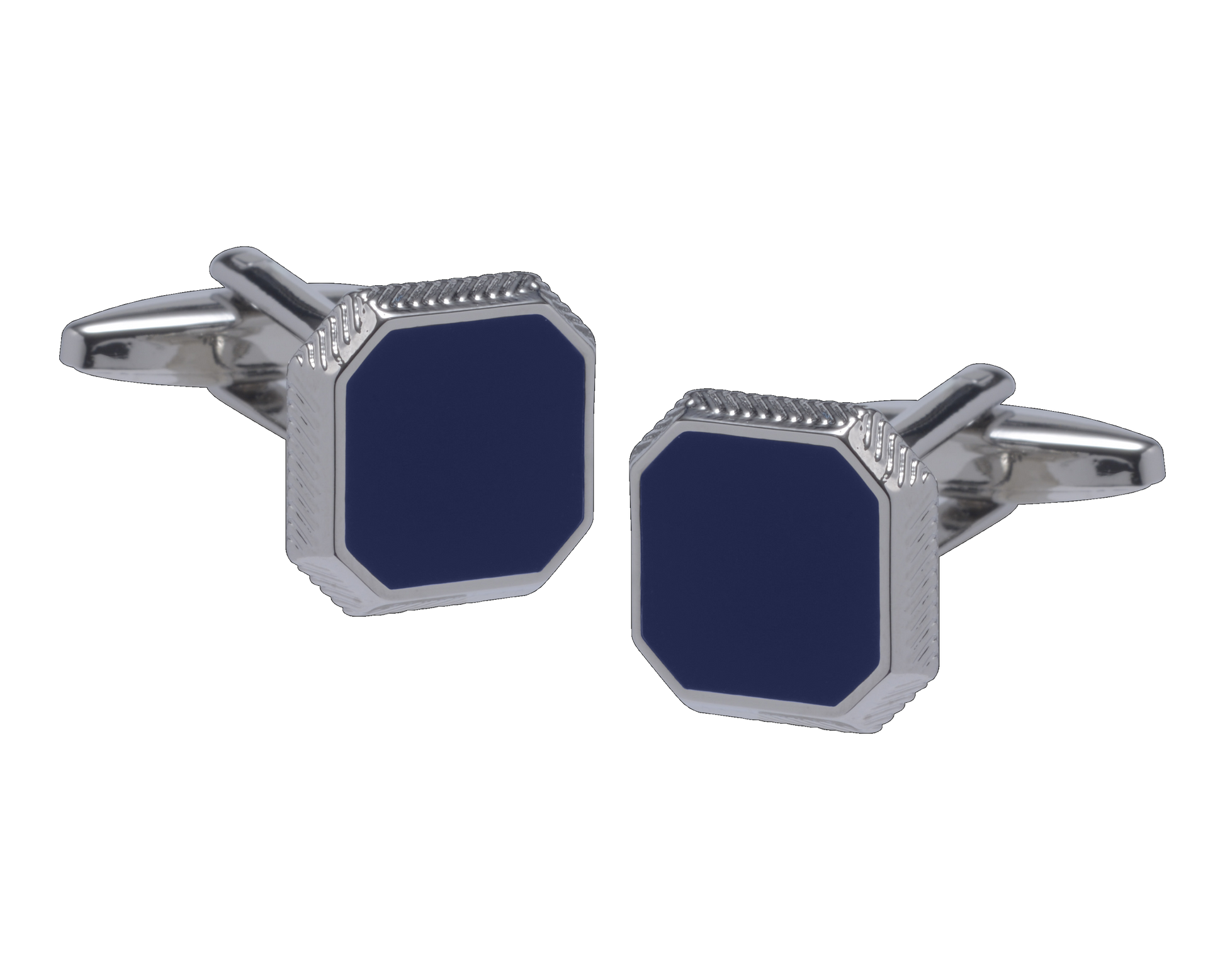 A unique refined octagon cufflink with a deep navy blue enamel inset & textured edging. This sophisticated design offers versatility to every formal wear accessory wardrobe. Perfect for weddings, black tie and beyond.