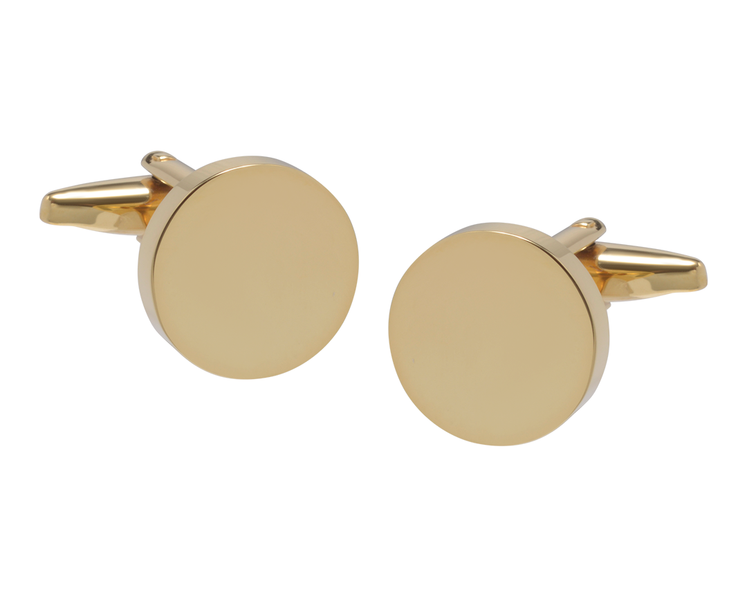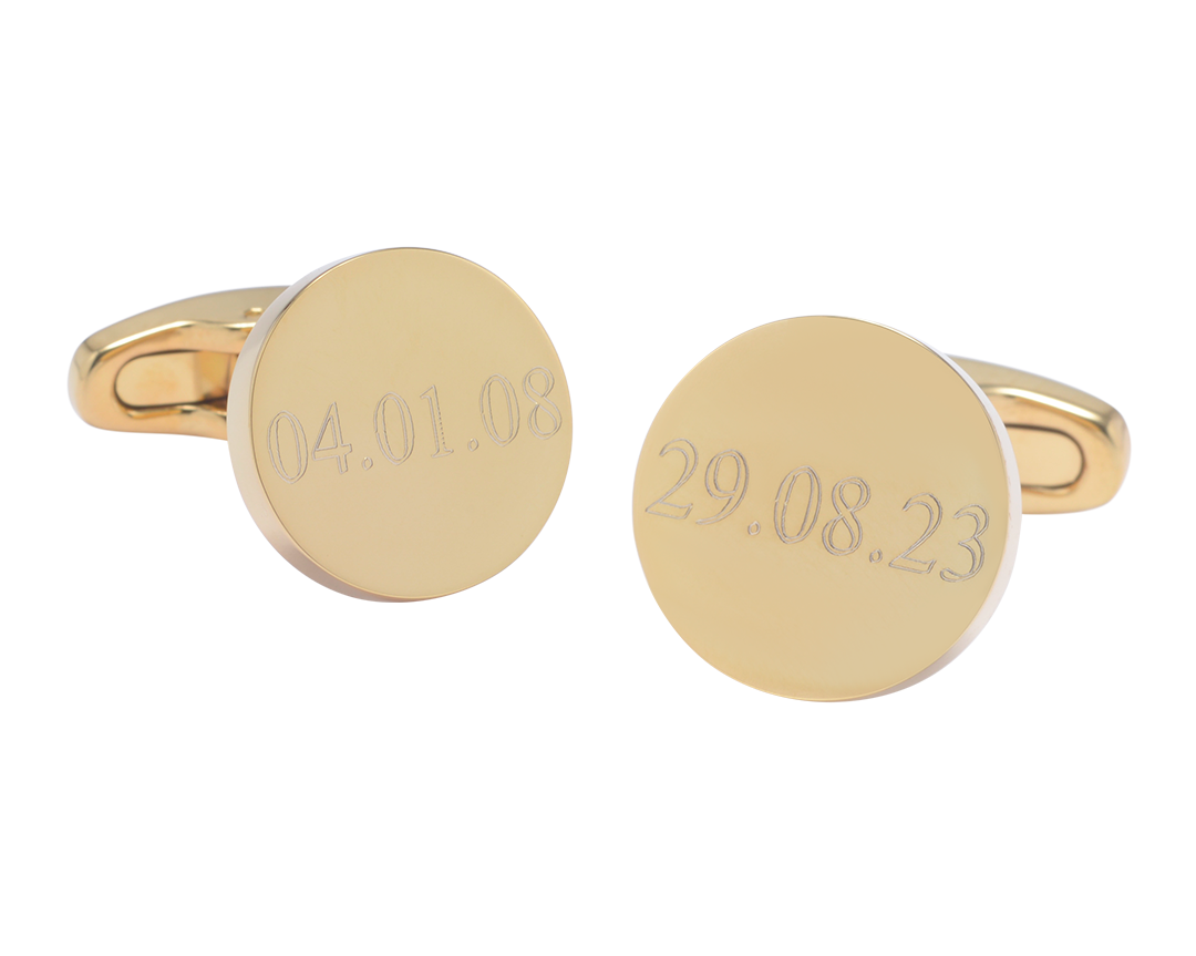 Luxurious, minimal, and effortlessly stylish. These round gold plated stainless steel cufflinks are a modern classic. The polished surface offers the perfect canvas for engraving, allowing you to add initials, a name, or a special date.