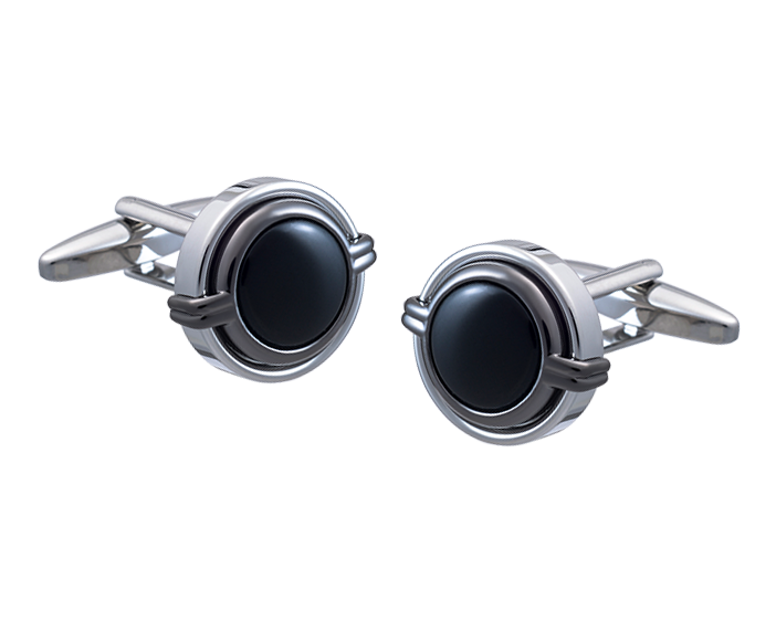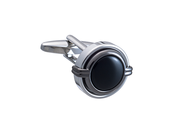 This interesting three-layer cufflink boasts additional character with its bold side detail. A cabochon Onyx centre is surrounded by a gunmetal second layer of grasps. Each layer is higher than the one before, creating a stacked look that is perfect for formal events and every day formal accessorising. A unique way to add interest and personality to a look.