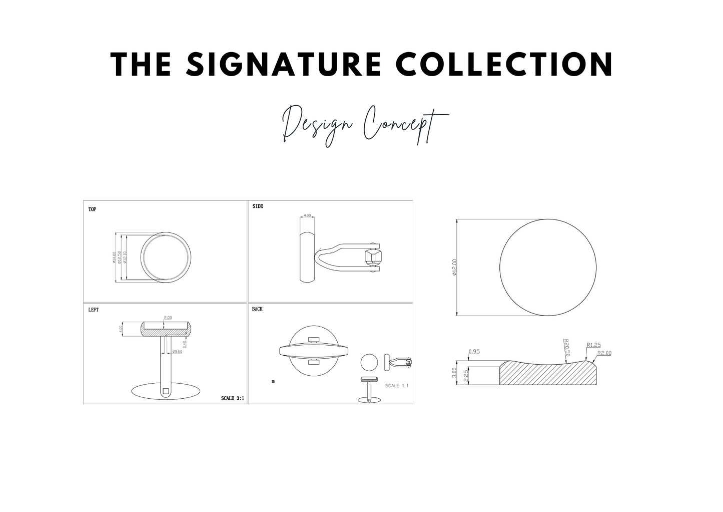 The Signature Collection pieces will come to life when hit by the light. Our standard cufflink bascule ensure they are easy to put on and wear too.