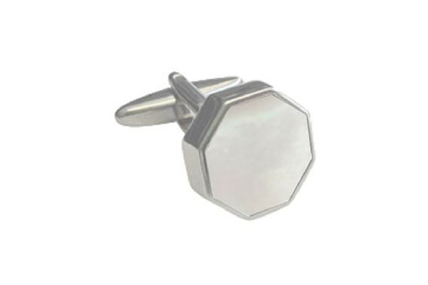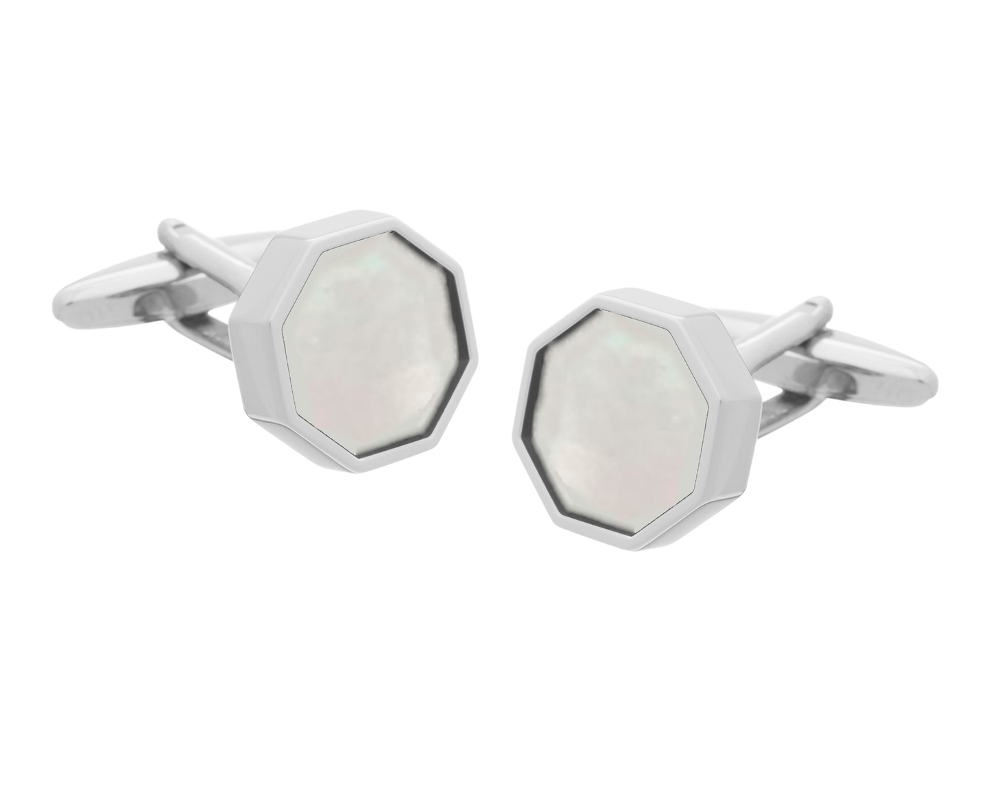 These semi-precious stone cufflinks see beautiful Mother of Pearl sunken into an octagonal polished metal case, A stylish accompaniment to a crisp white shirt.