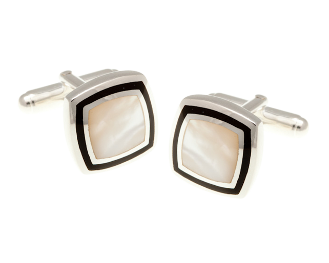 A black onyx frame is placed around a white mother of pearl centre to create a fabulous looking pair of square cufflinks. A true masterpiece, they will adorn your cuff for years to come.