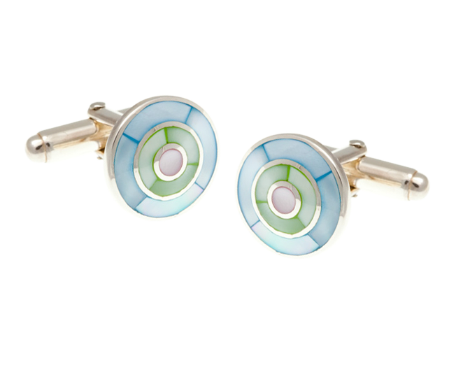 Material: .925 Sterling Silver with Blue, Green and Pink Mother of Pearl and Onyx Insert