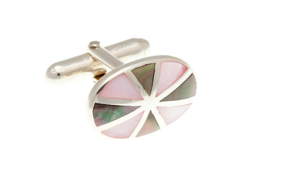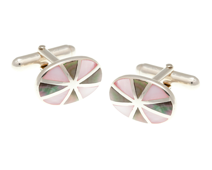 A stunning sunray design uses alternate segments of smoky and pink mother of pearl to create these fabulous oval cufflinks. Manufactured from .925 Sterling Silverthese cufflinks make a lovely keepsake present - perfect wedding cufflinks or a gift for a milestone birthday.