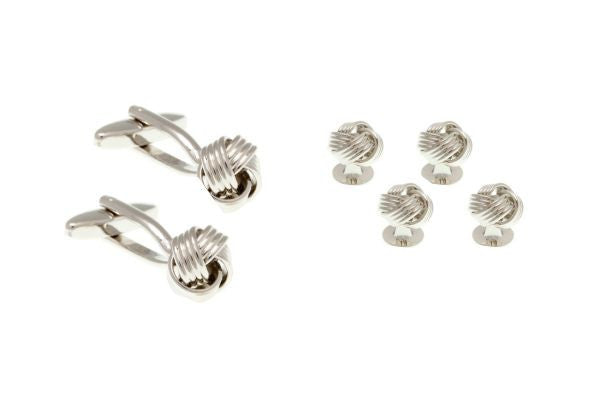 A stunning addition for any formal occasion - 4 dress studs and matching cufflinks in an intricate woven knot design - wonderfully classic on a crisp white dress shirt.