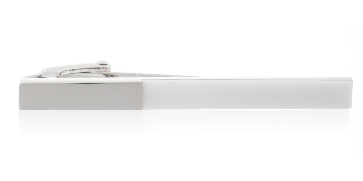 Stand out from the crowd with this unusual & very interesting white acrylic & polished metal Tie Clip by Elizabeth Parker. Two-thirds of the length of the Tie Clip boasts white acrylic, which runs into polished metal.