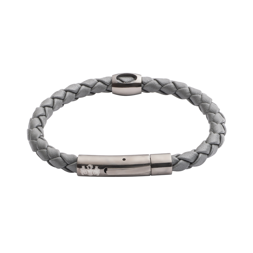 An outstanding combination of braided, genuine leather with a stainless steel clasp and designer hollow bead make this this grey bracelet classy enough to be worn for both smart and casual occasions.